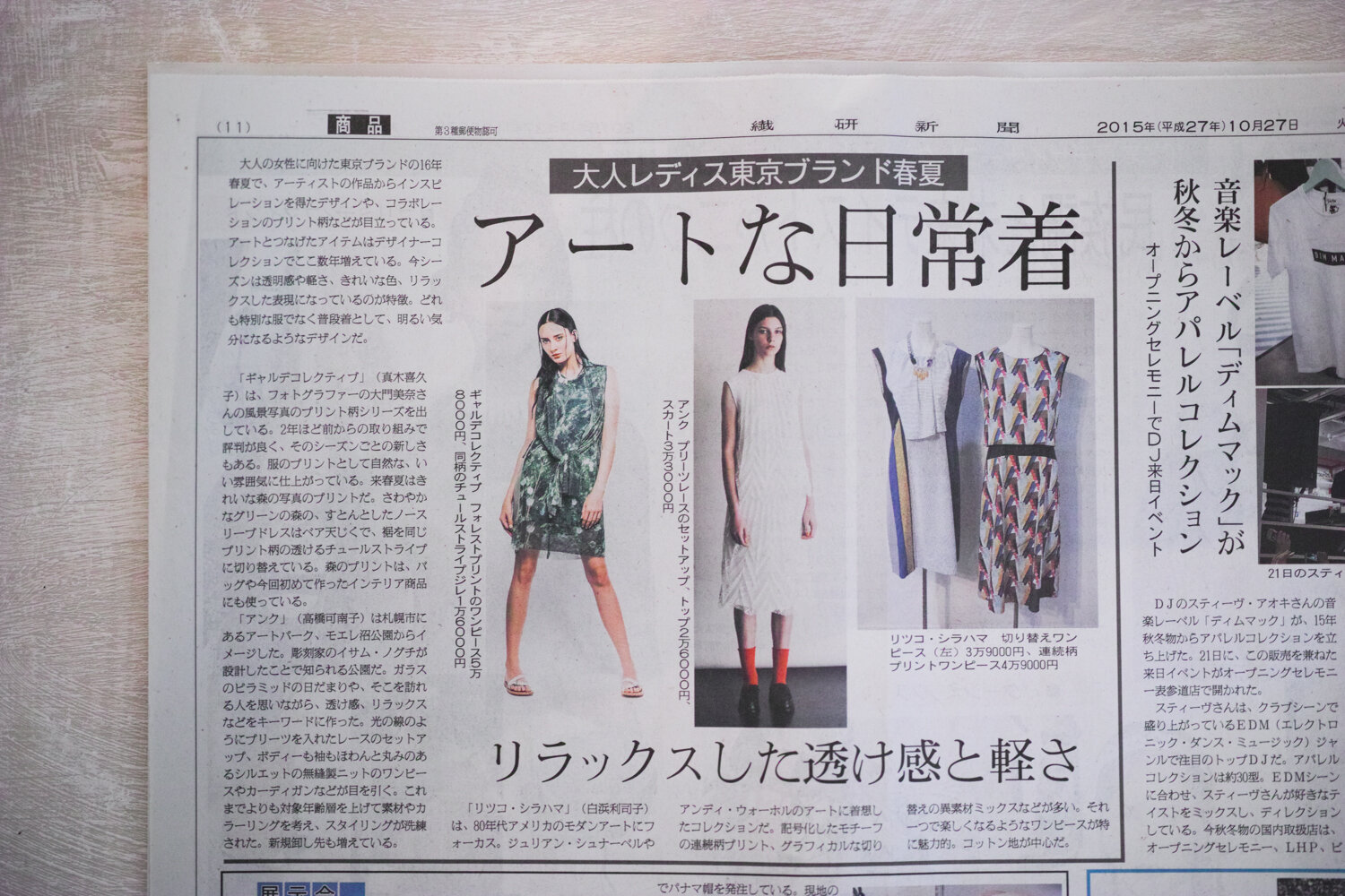 一昨日(10月27日)ですが、繊研新聞でご紹介いただきました。